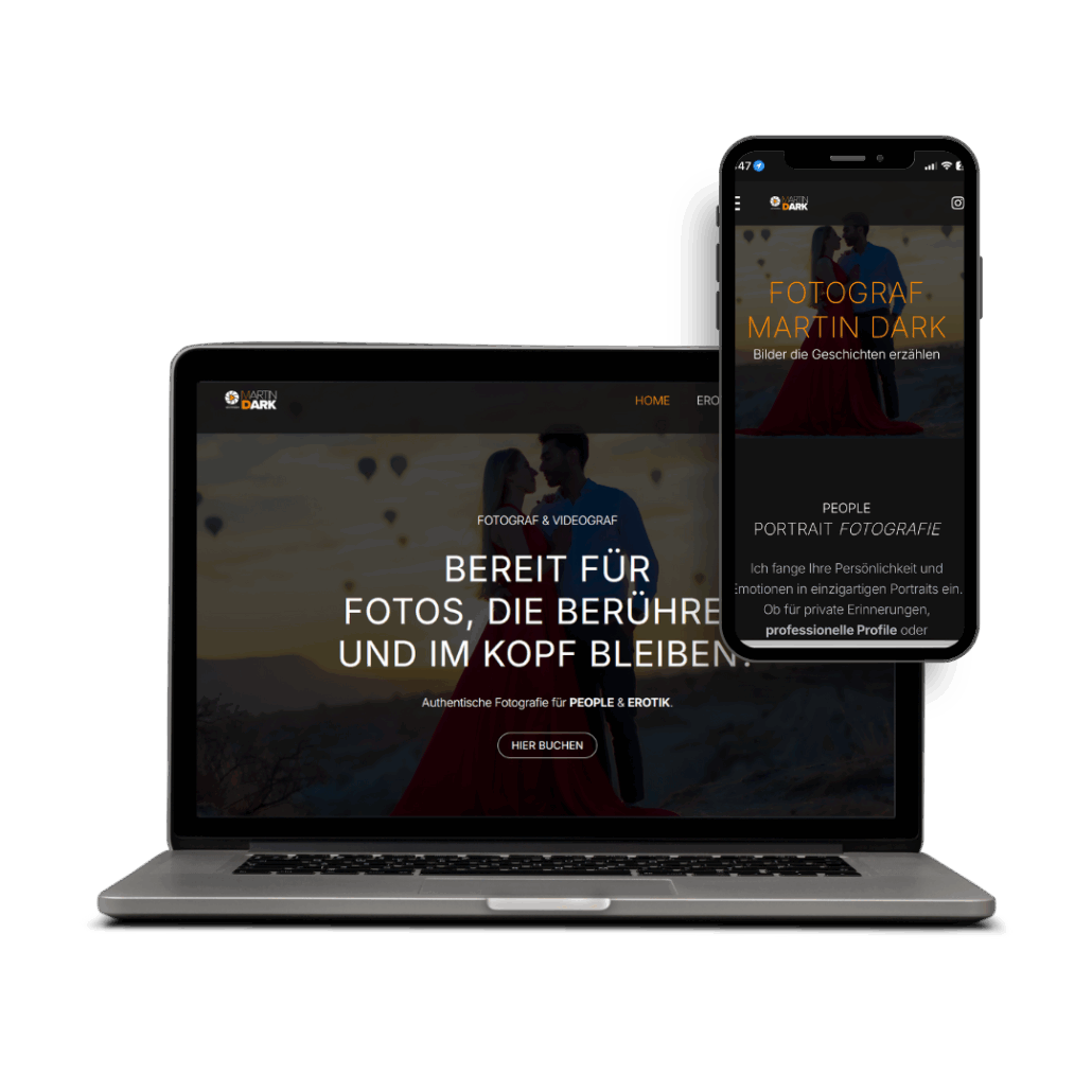 Für Martin Dark durfte ich eine Website gestalten, die das einfängt, was seine Arbeit ausmacht: Authentizität, Kreativität und ein gutes Auge für Details. Online sollte sich das genauso widerspiegeln – klar strukturiert, modern und mit viel Raum für seine Bilder.